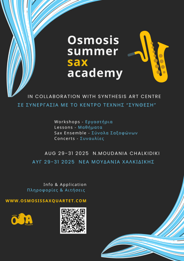15.00 – 17.00 ομαδική πρόβα με την ορχήστρα σαξοφώνων, υπεύθυνος Γιάννης Μυράλης