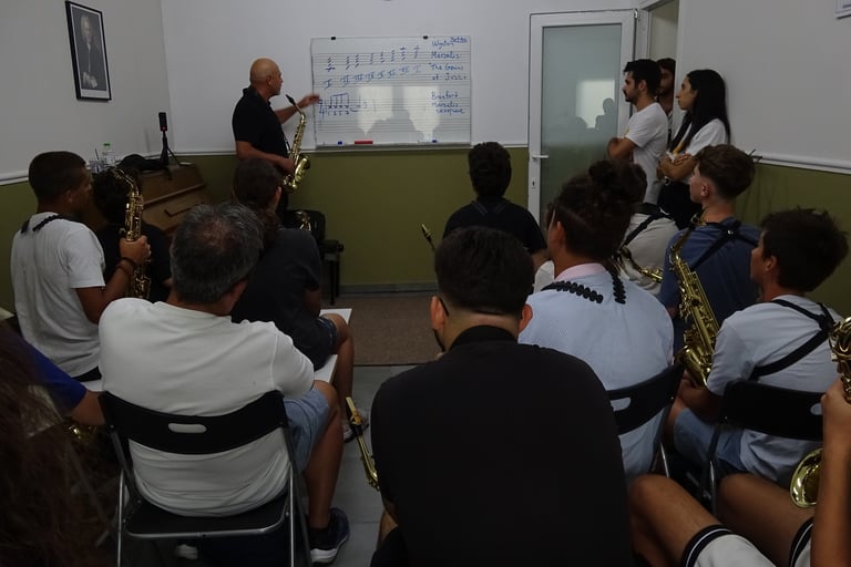 18.30 - 20.00 Ομαδική πρόβα (όλοι οι σπουδαστές) με την ορχήστρα σαξοφώνων, υπεύθυνος Γιάννης Μυράλης